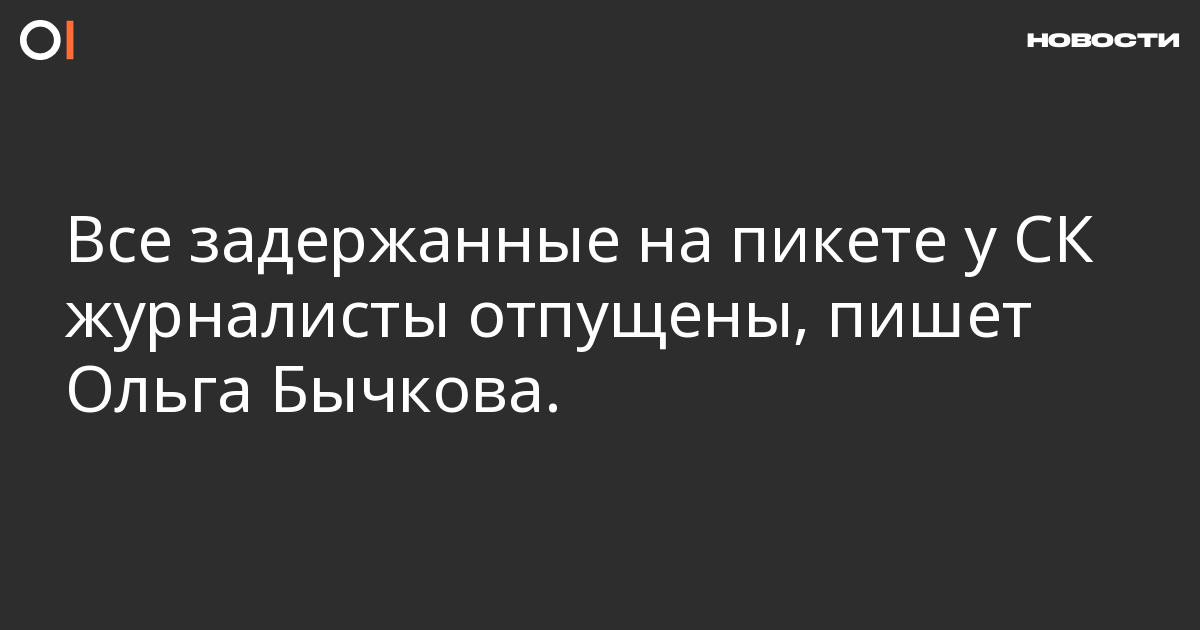 Все задержанные на пикете у СК журналисты отпущены, пишет Ольга Бычкова.