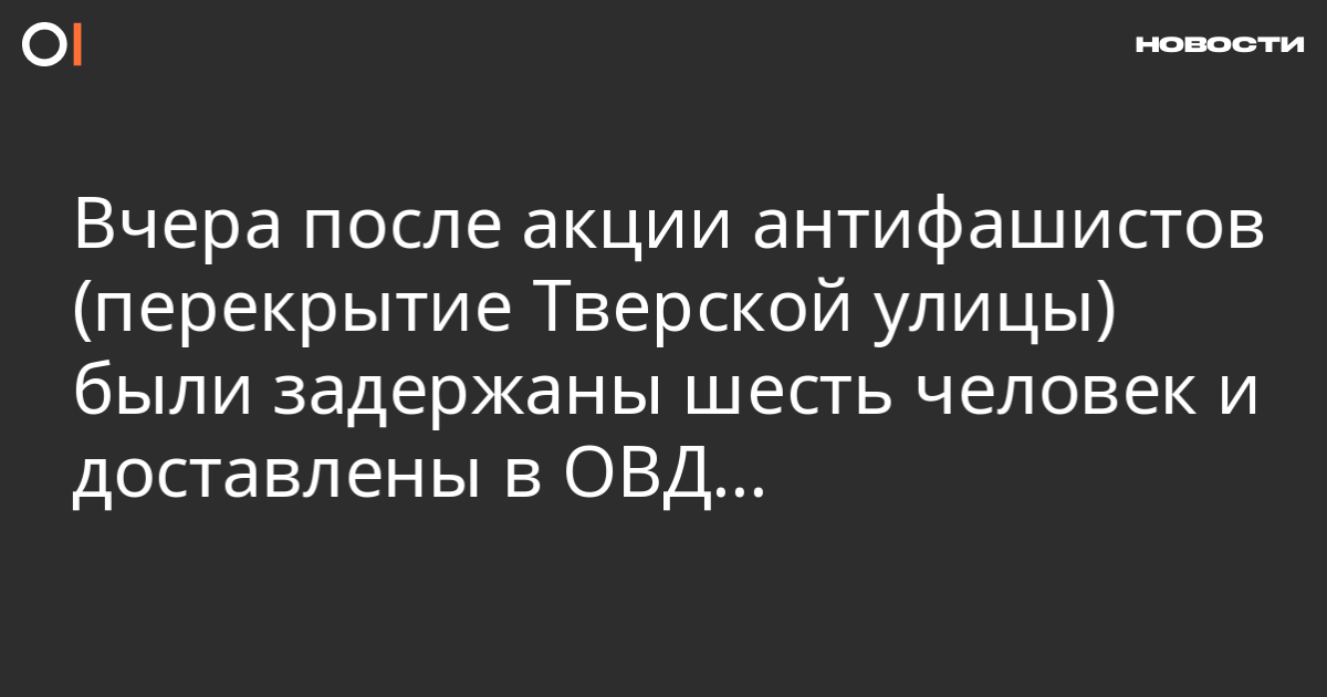 Вчера после акции антифашистов (перекрытие Тверской улицы) были задержаны шесть человек и доставлены в ОВД Тверское, фамилии неизвестны.