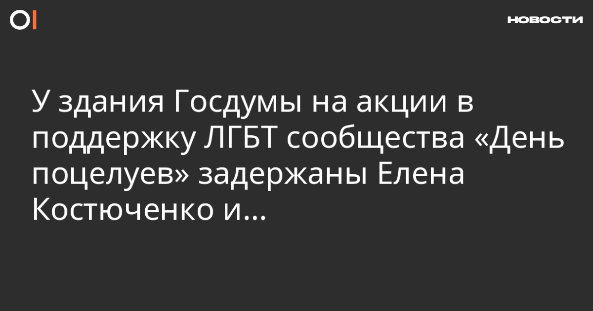 У здания Госдумы на акции в поддержку ЛГБТ сообщества «День поцелуев» задержаны Елена Костюченко и Анна Анненкова. Кроме того там же задержан мужчина с видеокамерой.