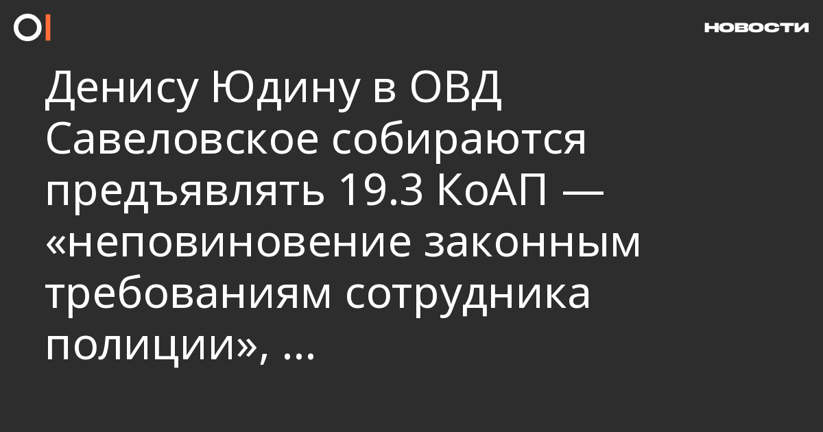 Денису Юдину в ОВД Савеловское собираются предъявлять 19.3 КоАП — «неповиновение законным требованиям сотрудника полиции», …