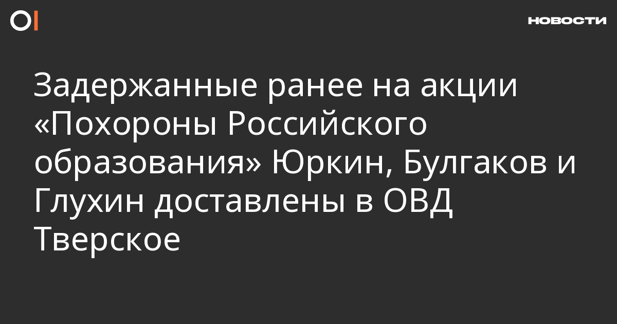 Задержанные ранее на акции «Похороны Российского образования» Юркин, Булгаков и Глухин доставлены в ОВД Тверское
