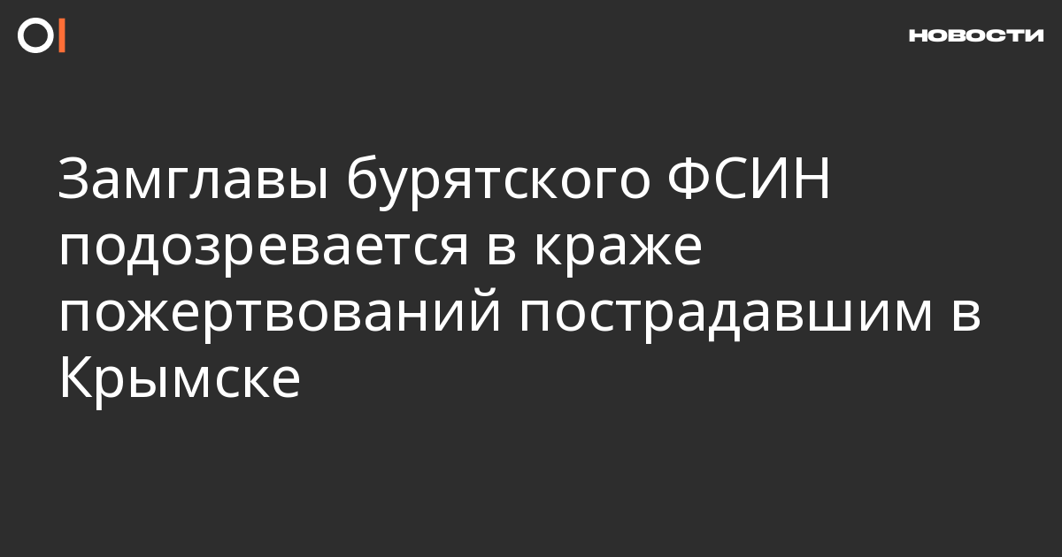 Следственный комитет полагает, что из 170 тысяч рублей, собранных сотрудниками бурятского ФСИНа, замначальника республиканского УФСИНА Сергей Коваль «забрал себе и потратил на личные нужды» 56 тысяч рублей. Об этом, а также увольнении замдиректора ФСИНа Николая Криволапова и других злоупотреблениях в тюремном ведомстве — читайте в еженедельном дайджесте ОВД-Инфо «Тюрьма и около».