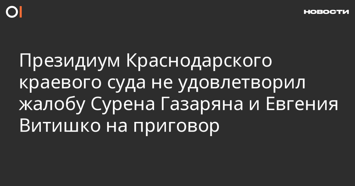 Президиум Краснодарского краевого суда оставил без удовлетворения жалобы экологов Сурена Газаряна и Евгения Витишко на приговор по делу о порче забора дачи, предположительно принадлежавшей губернатору края Александру Ткачеву и незаконно строившейся в заповедной зоне. Газарян и Витишко были приговорены к трем годам условно. Нынешнее решение было принято после того, как Верховный суд признал жалобу экологов обоснованной и направил дело в президиум Краснодарского краевого суда.