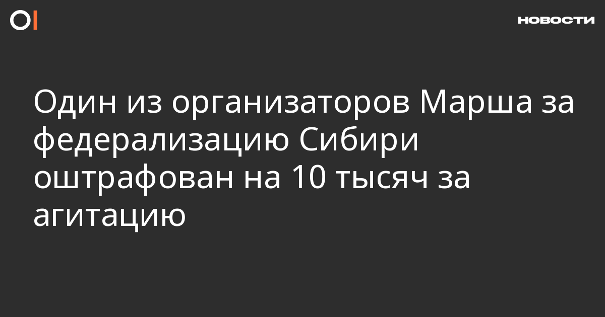 26 августа один из организаторов Марша за федерализацию Сибири Алексей Баранов был приговорен к штрафу в 10 тысяч рублей. Железнодорожный районный суд Новосибирска согласился с обвинением в том, что Баранов агитировал неких двух жителей города Купино сходить на марш. Баранов утверждает, что такого не было. Жителей Купина привезли на суд (как рассказал Баранов, их привезли на «волге» и у суда дежурили некие люди в штатском). Баранов сказал ОВД-Инфо, что видел этих людей в первый раз в жизни. При этом один из них утверждал, что учился с Барановым в институте. По словам Баранова, судья фактически подсказывал этим свидетелям, как отвечать. Показания их были практически идентичными, при этом, как рассказал Баранов, они притворялись, что пытаются вспоминать обстоятельства. Показания же свидетелей защиты, утверждавших, что Баранов в указанный день был не с этими людьми из Купина, а в другом месте, суд учитывать не стал, заявив, что поскольку эти свидетели являются друзьями Баранова, то их показания необъктивны. Баранов намерен обжаловать судебное решение.