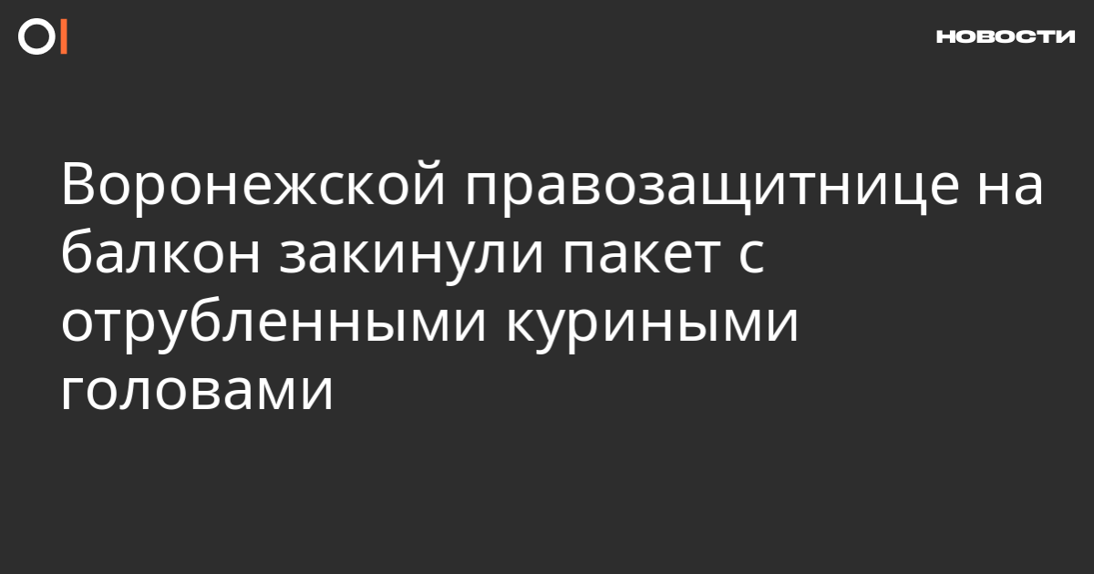 Воронежская правозащитница Наталья Звягина утром 13 сентября обнаружила у себя на балконе пакет с отрубленными куриными головами, сообщает «Воронежский городской портал». Этому предшествовал шум, который она слышала ночью, но не придала ему значения. Кроме того, выйдя из квартиры, она обнаружила, что ее дверь облита зеленкой. Звягина написала в полицию заявление о нападении. Она считает ночную выходку продолжением серии нападений на правозащитников в городе по аналогии с нападением на члена президентского Совета по правам человека Андрея Юрова, которого 1 июля неизвестные ударили по голове и облили зеленкой. Почему ей закинули на балкон именно куриные головы, Звягиной неясно. (Можно вспомнить похожую, но более ясную историю в Новосибирске, когда незадолго до несогласованного Марша за федерализацию Сибири одному из его организаторов Алексею Баранову подбросили под дверь квартиры отрубленную баранью голову.)
