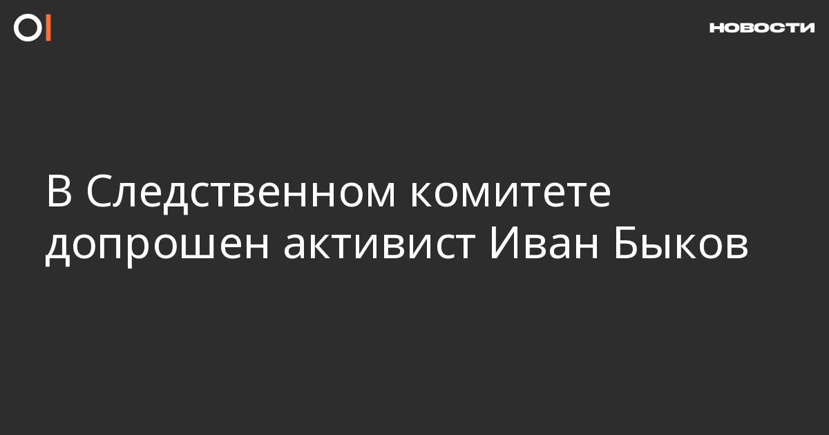 Правый активист Иван Быков, участвовавший в «Стратегии-31», допрошен в Главном управлении Следственного комитета. До этого в его квартире был проведен обыск. Об этом сообщает в Facebook его жена Ольга Малыш. По ее словам, в квартире искали взрывчатку и оружие, упоминали дело об убийстве Станислава Маркелова, в качестве формального повода для обыска назывались некие взрывы в Москве несколько лет назад. На допросе упоминали активиста «Другой России» Павла Жеребина, говоря, что он химик. В Следственном комитете у Быкова взяли слюну на экспертизу.