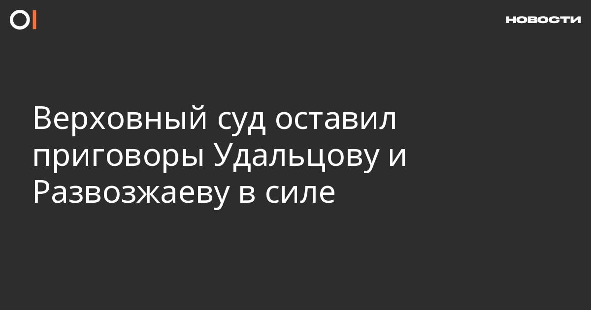 Верховный суд РФ 18 марта рассмотрел жалобу на приговоры Сергею Удальцову и Леониду Развозжаеву, осужденным по «Болотному делу», и оставил их в силе, сообщает «Медиазона». Единственным изменением стало снятие с Развозжаева за истечением срока давности обвинений в незаконном пересечении границы и отмена наложенного за это штрафа в 150 тысяч рублей.