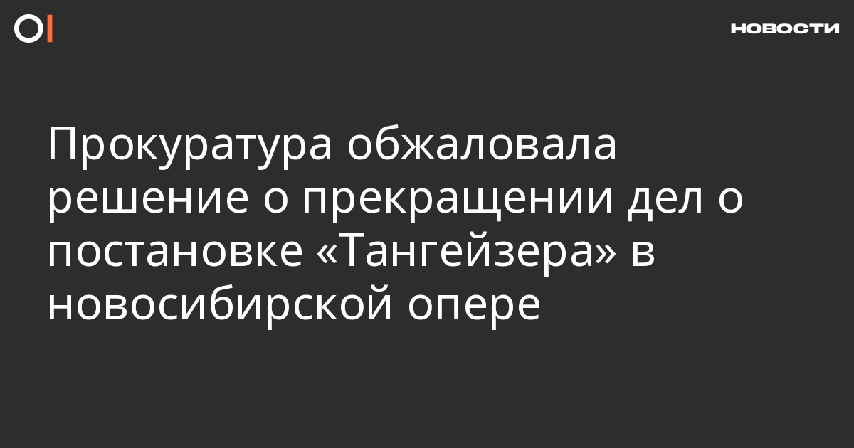 Прокуратура Новосибирска обжаловала решение мирового суда Центрального района города, прекратившего дела в связи с постановкой оперы Вагнера «Тангейзер» в Новосибирском оперном театре. Дела были заведены по статье об умышленном публичном осквернении религиозной символики. 10 марта суд принял решение прекратить дела в отношении директора театра Бориса Мездрича и режиссера постановки Тимофея Кулябина в связи с отсутствием состава преступления.