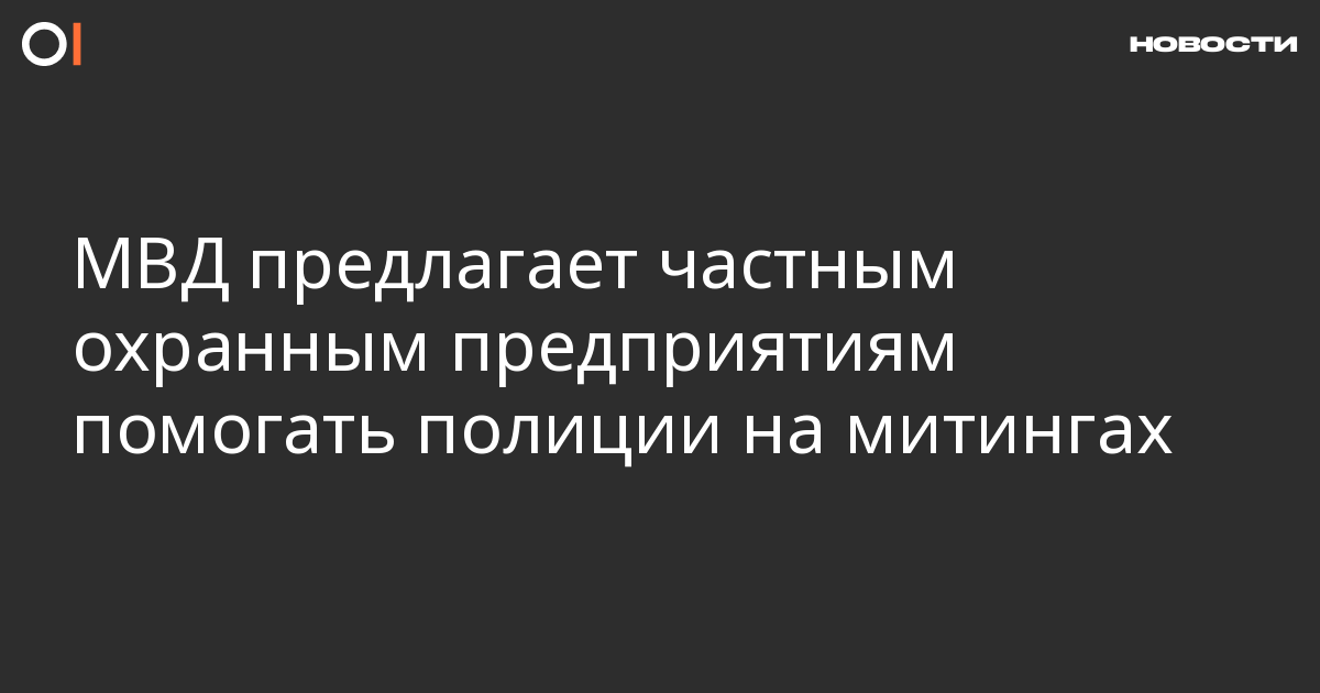 Министерство внутренних дел предложило обязать частные охранные предприятия (ЧОП) помогать полицейским на митингах и прочих массовых акциях. Сейчас частные детективы и сотрудники ЧОП могут содействовать полицейским на добровольной основе; ведомство же хочет переделать это в непосредственную обязанность. Соответствующий документ был опубликован на сайте проектов нормативных правовых актов 4 сентября.
