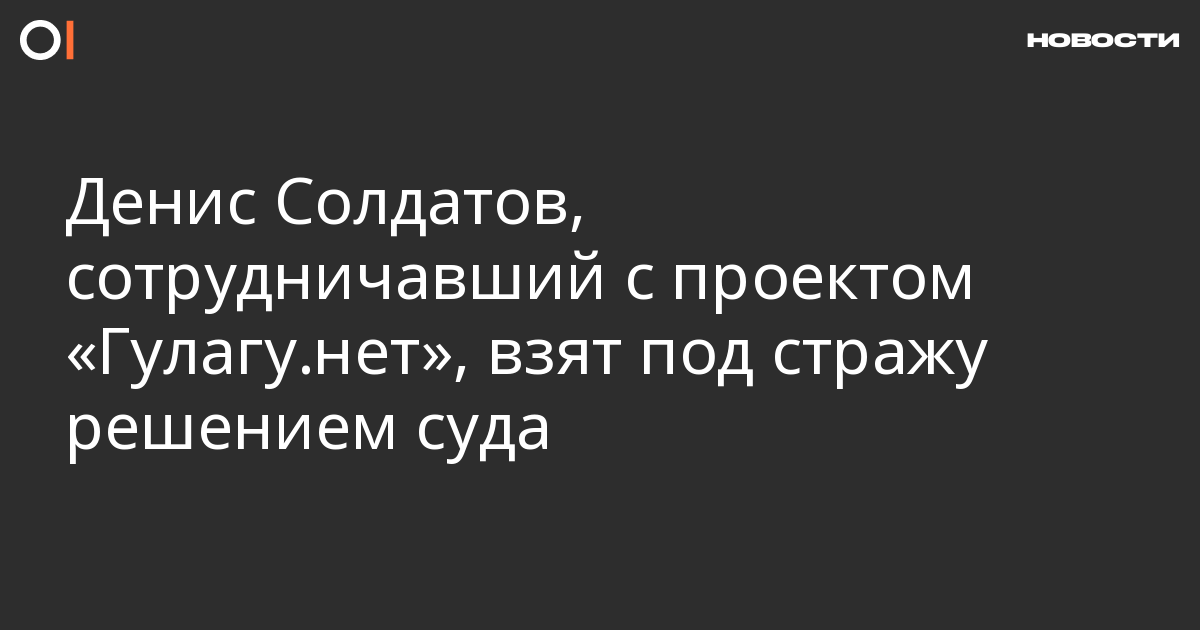 Денис Солдатов, сотрудник юридической фирмы, сотрудничавшей с проектом «Гулагу.нет», подозреваемый в мошенничестве, взят под стражу по решению суда. Об этом сообщается на сайте Следственного комитета. По данным следствия, Солдатов взял у дочери заключенного, находившегося под следствием, деньги, пообещав, что привлечет к делу адвокатов и СМИ и, возможно, поможет освободить ее отца от уголовной ответственности, однако «в действительности» «не имел ни намерений, ни возможности выполнить свои обязательства».
