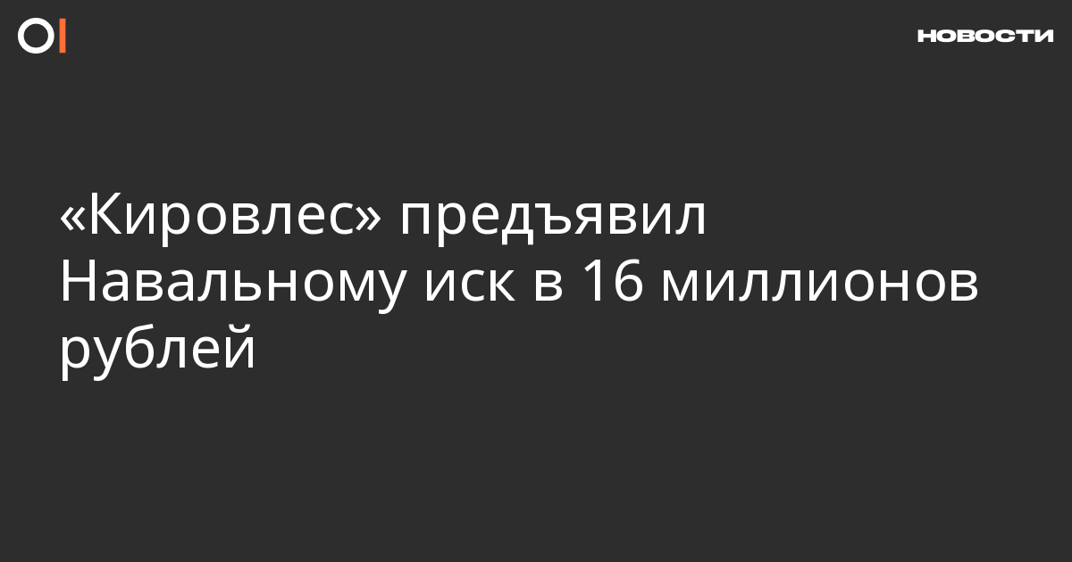 Предприятие «Кировлес» подало гражданский иск о возмещении 16 миллионов рублей по уголовному делу, обвиняемыми в котором проходили оппозиционер Алексей Навальный, предприниматель Петр Офицеров и гендиректор компании Вячеслав Опалев. Об этом Навальный сообщил в своем блоге. Как пишет Навальный, средств для погашения иска у него нет.