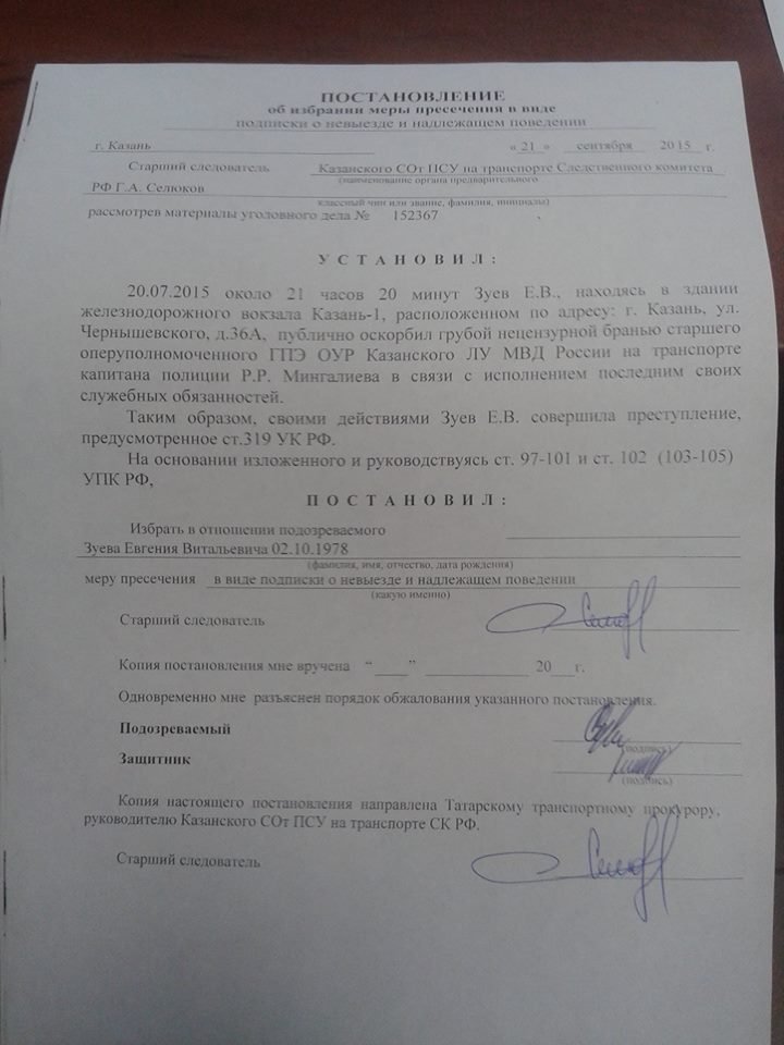Ранее он рассказывал, что причиной возбуждения дела стал инцидент на вокзале в Казани, где он назвал полицейских тунеядцами. Ему же вменяют «грубую нецензурную брань». По мнению Зуева, делу был дан ход в связи с его про украинской позицией.