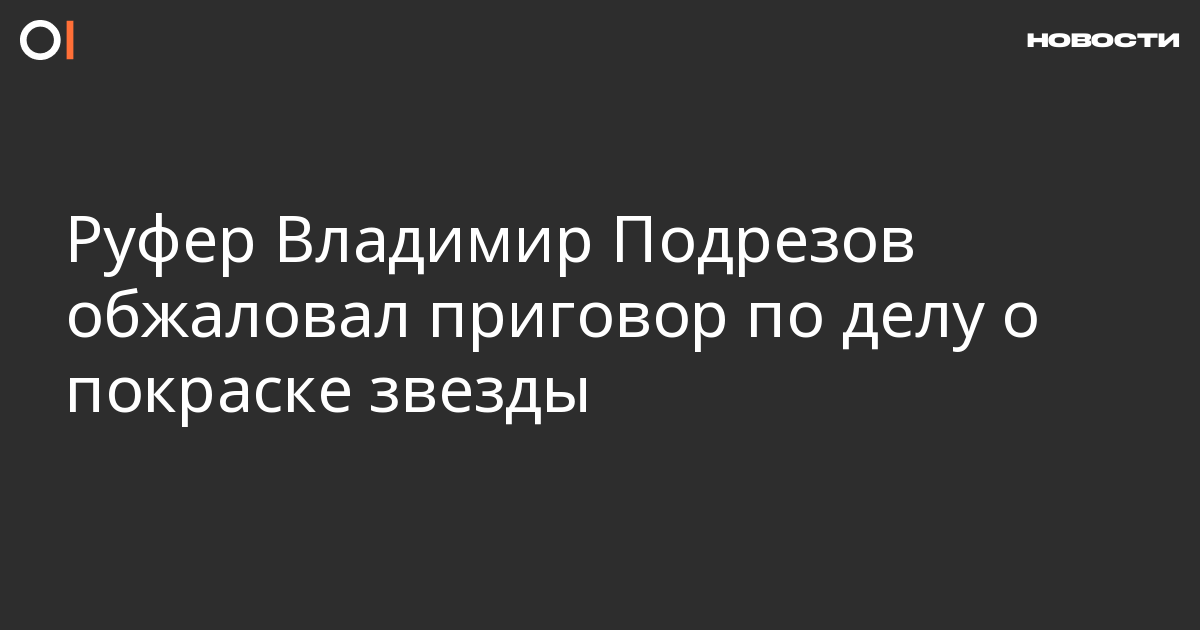 Руфер Владимир Подрезов, приговоренный к двум годам и трем месяцам колонии по делу о покраске звезды, обжаловал приговор. Об этом сообщает «Медиазона» со ссылкой на его адвоката Светлану Сидоркину.