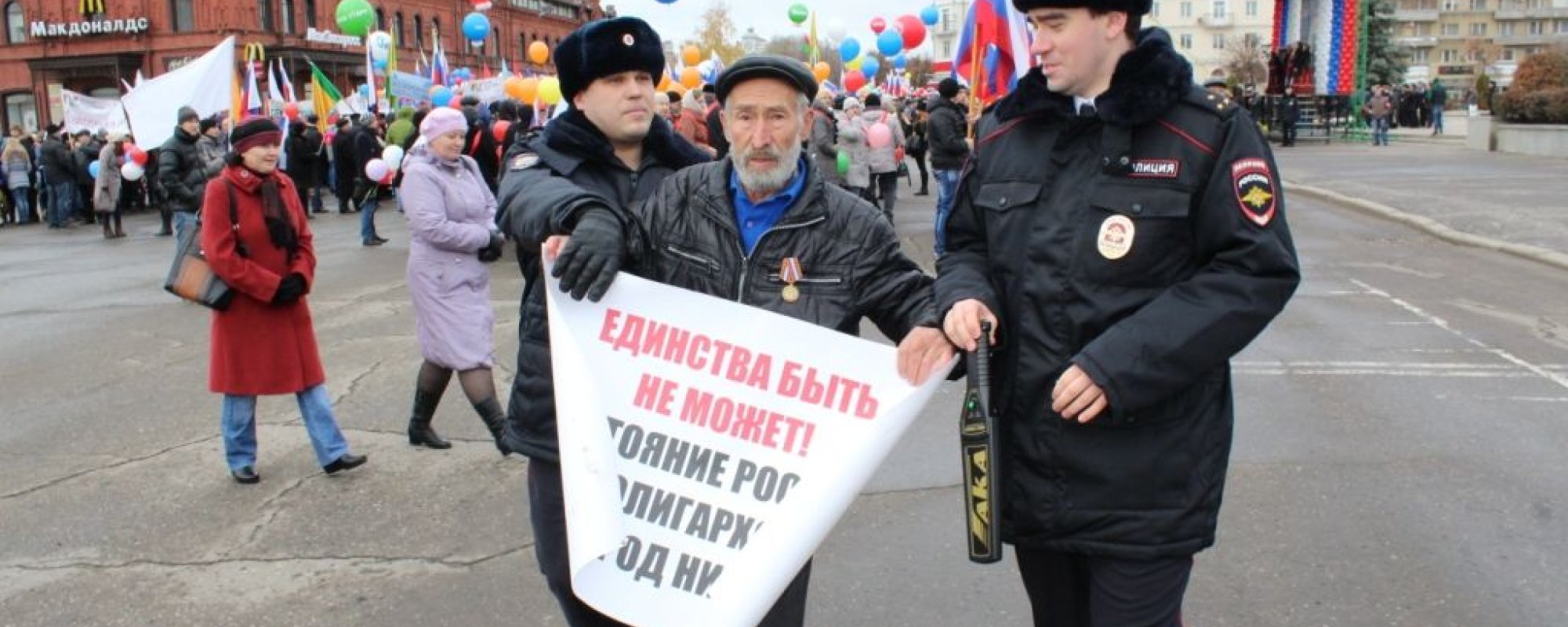 Член КПРФ, пенсионер Владимир Зазерин был задержан в Пензе во время одиночного пикета 4 ноября. Как сообщается на сайте регионального отделения КПРФ, Зазерин стоял с плакатом «Единства быть не может! Достояние России — у олигархов, а народ нищает!» на площади Ленина, рядом с местом празднования Дня народного единства. Сразу после начала пикета к нему подошли сотрудники полиции и задержали его без объяснения причин, доставили в отдел полиции № 1 и продержали там два часа, взяв с него объяснения.