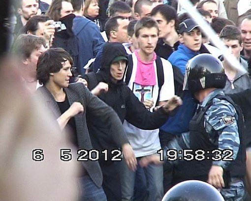 В распоряжении ОВД-Инфо оказалась фотография с Болотной площади 6 мая 2012 года. В центре изображен «человек в черном», которого в Следственном комитете считают Дмитрием Бученковым. По мнению товарищей Бученкова, это — явно кто-то другой.