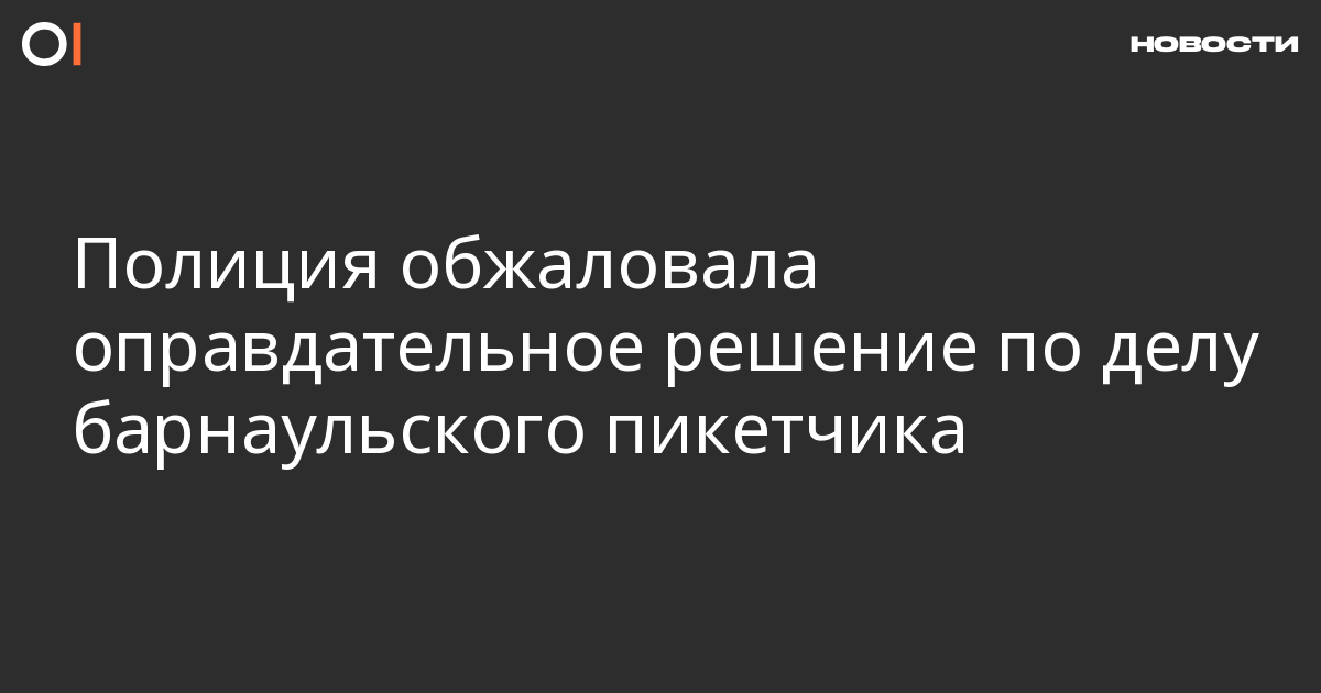 Полиция обжаловала решение районного суда, оправдавшего Виктора Рау, участника одиночного пикета за возвращение выборов мэра, прошедшего в Барнауле 24 сентября. Об этом сообщает местное информационное агентство «Амител» со ссылкой на главу отдела информации и общественных связей регионального ГУ МВД Светлану Ляпунову.