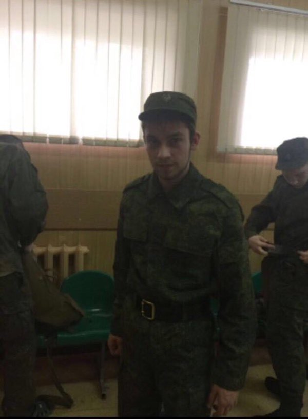 Михаил Конев находится уже в качестве призывника на сортировочном пункте на юге Москвы, одет в военную форму. Далее он будет отправлен куда-то, мы пока не понимаем куда именно, для выполнения военной службы