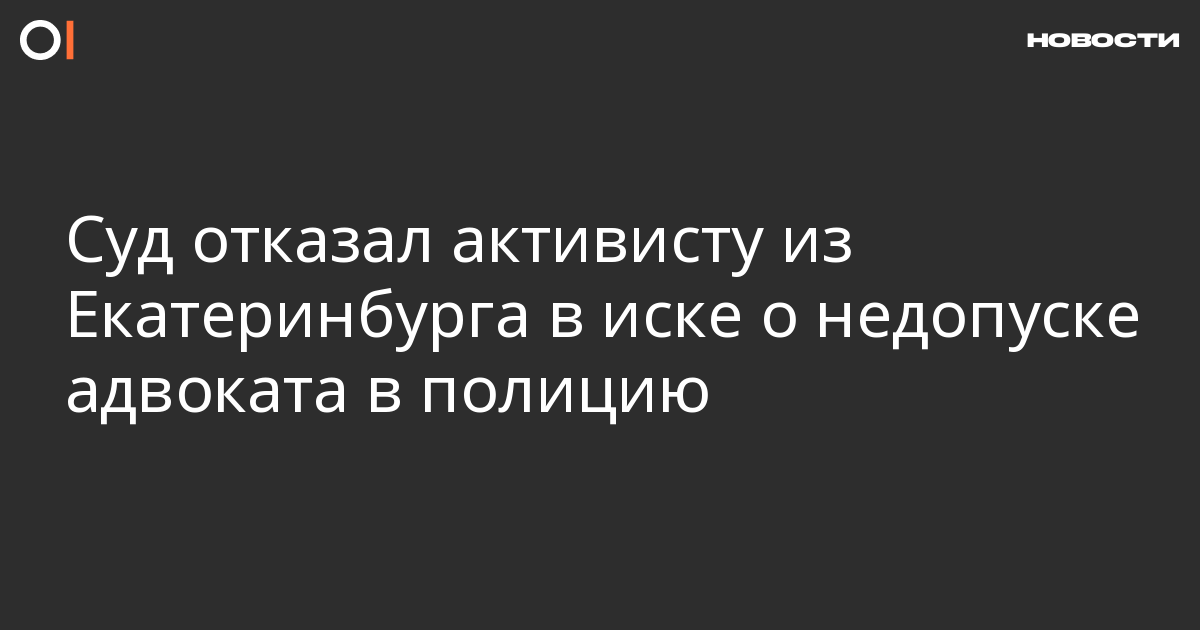 13 мая в Екатеринбурге прошло последнее, четвертое по счету, заседание по иску активиста Юрия Изотова к 5 отделу полиции об отказе в доступе адвоката к подзащитному. Суд отказал в удовлетворении заявления полностью, защита намерена обжаловать это решение. Об этом написал Рустам Мустафин в своем профиле Facebook.