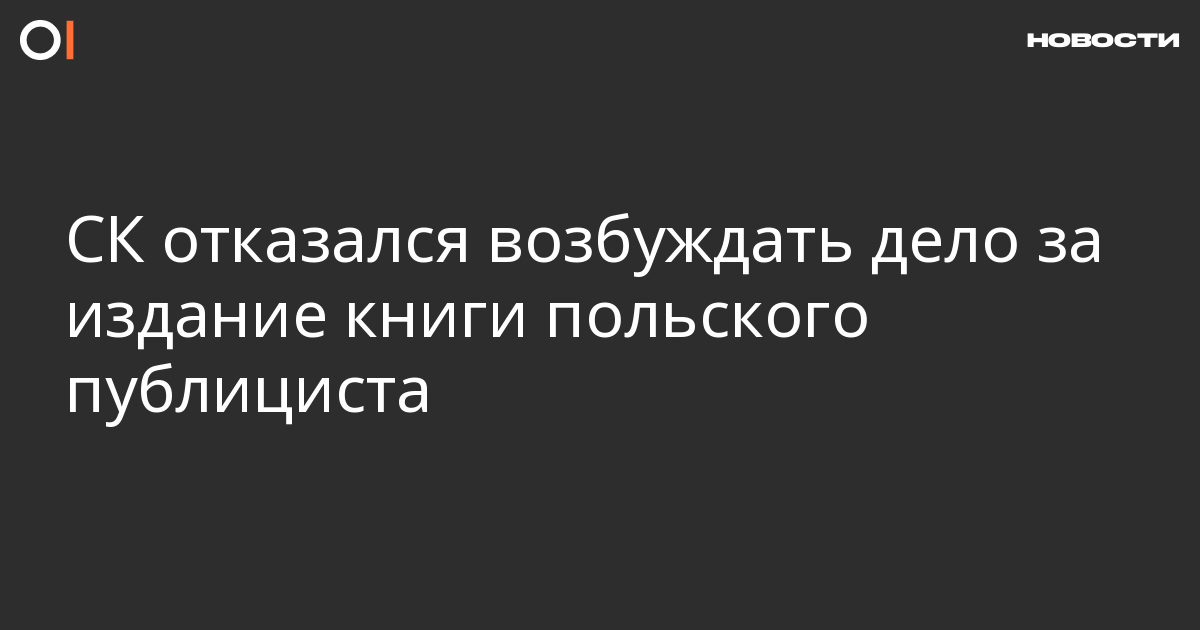Следственное управление Следственного комитета по Санкт-Петербургу завершило проверку изъятого в типографии «Береста» тиража книги польского публициста Яна Новака-Езёраньского «Восточные размышления». СК отказал в возбуждении уголовного дела по факту издания книги, поскольку не обнаружил в ней признаков экстремизма.
