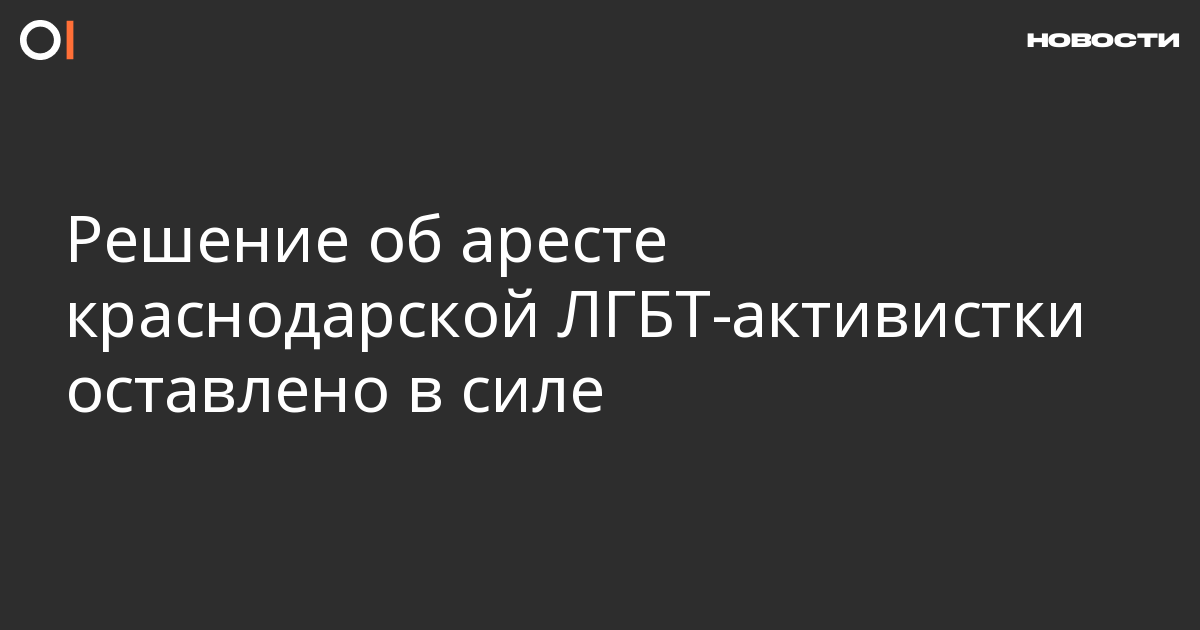 Краснодарский краевой суд 25 мая отказался отменить решение о десятидневном аресте для ЛГБТ-активистки Нины Соловьевы за публикацию в соцсети песни Бориса Севастьянова «Это, детка, рашизм». Об этом пишет в Facebook ее защитник Андрей Сабинин.