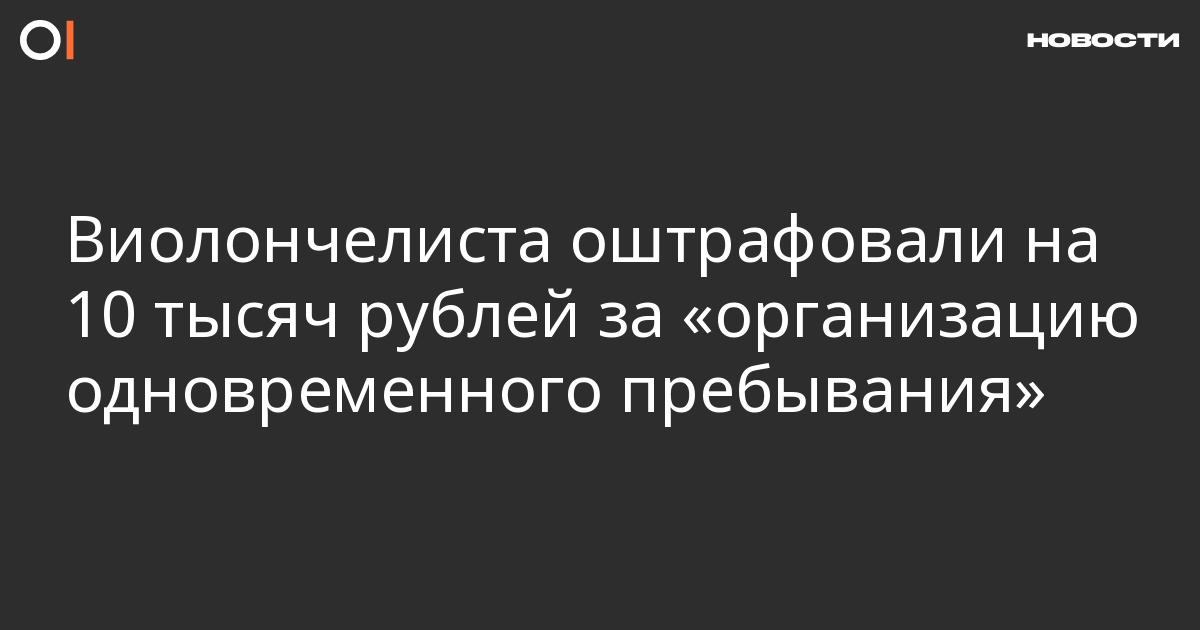 Судья Орехова Тверского районного суда 28 июня оштрафовала виолончелиста Семена Лашкина на 10 тысяч рублей по обвинению в организации «одновременного массового пребывания» (по статье 20.2.2 КоАП). Об этом сообщил из зала суда депутат Госдумы Дмитрий Гудков.