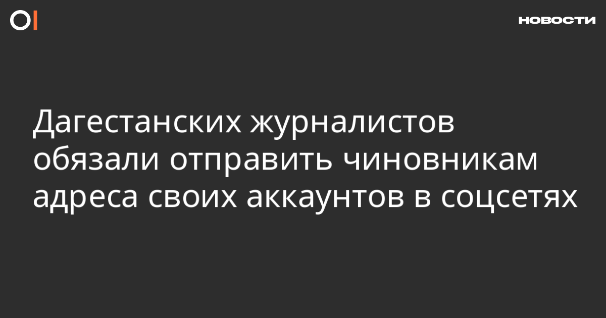 Министерство печати и информации Дагестана потребовало от журналистов государственных СМИ предоставить имена и адреса личных страниц руководителей и сотрудников изданий в соцсетях. Об этом пишет 27 октября «Коммерсантъ» со ссылкой на текст распоряжения, разосланный подведомственным учреждениям дагестанского министерства печати 20 октября.