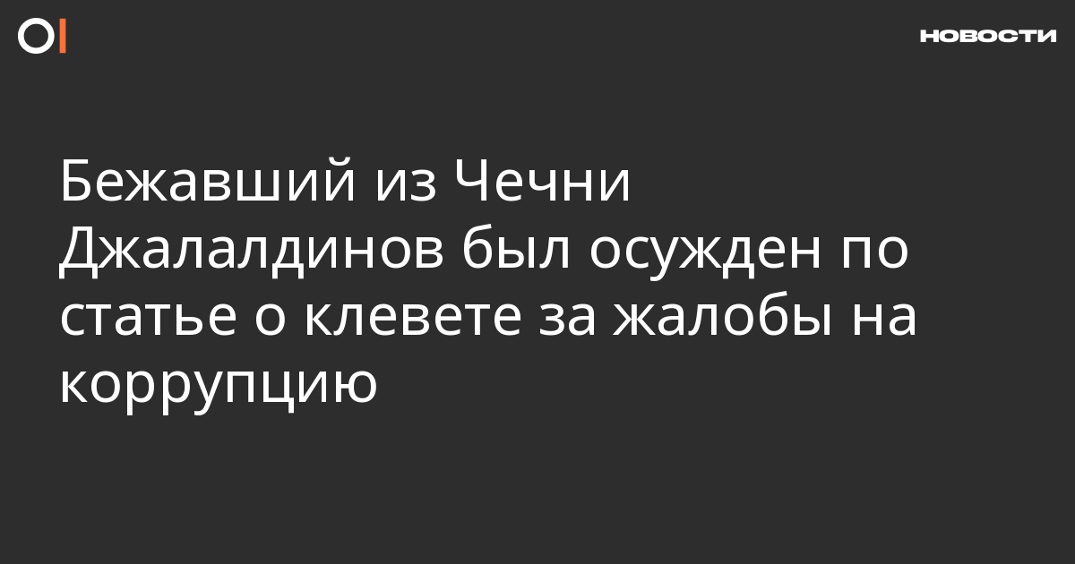 Житель Чечни Рамазан Джалалдинов, бежавший из республики после того, как, по его словам, ему угрожал убийством заместитель главы местного МВД, был осужден по статье о клевете. Об этом пишет «Новая газета».
