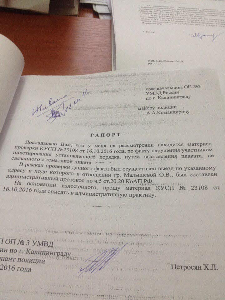 Центральный районный суд Калининграда в понедельник, 28 ноября, прекратил дело в отношении пенсионерки Ольги Малышевой, обвинявшейся в нарушении порядка проведения публичного мероприятия, за отсутствием состава правонарушения.