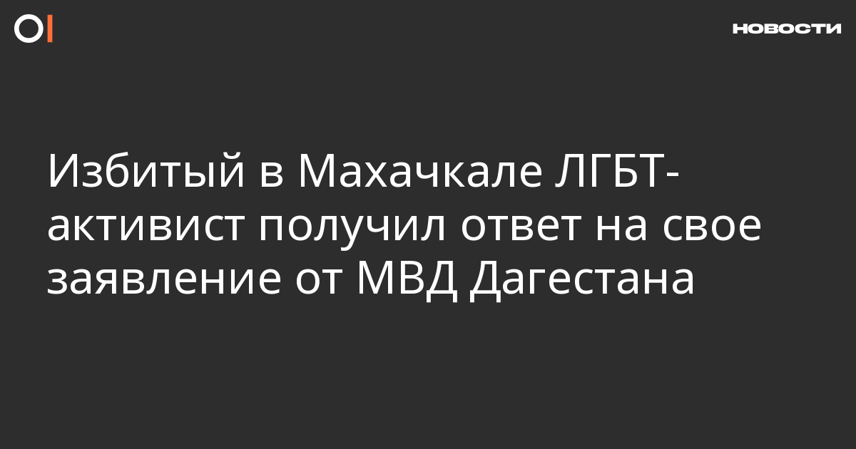 Томский видеоблогер Александр Сидоров, избитый в Махачкале в декабре после одиночного пикета против гомофобии, получил ответ на свое заявление от МВД Дагестана. Ответ ведомства состоит из одной фразы: «По результатам проведенной служебной проверки сведения, изложенные в обращении, не нашли своего подтверждения». Об этом ОВД-Инфо сообщили представители движения «Российская ЛГБТ-сеть».