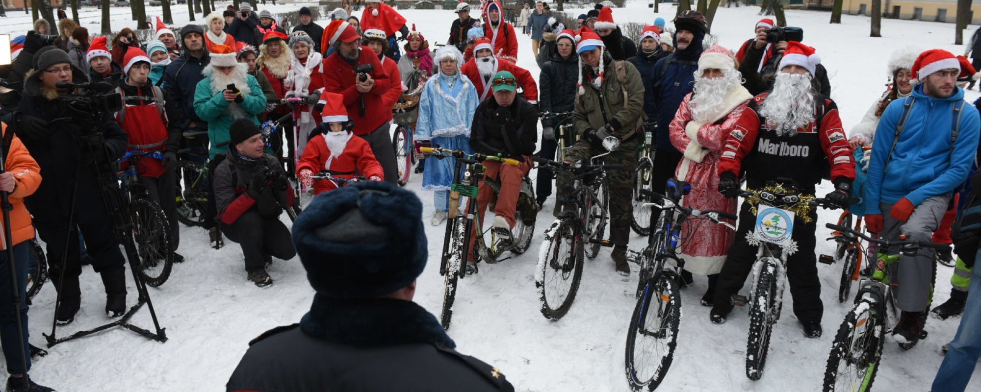 В Санкт-Петербурге полиция предупредила участников велопарада, собравшихся в субботу, 14 января, в Инженерном сквере в костюмах Дедов Морозов и Снегурочек, о том, что если колонна двинется, велосипедистов будут задерживать за участие в несогласованной акции. Об этом сообщает интернет-издание «Фонтанка» со ссылкой на собственного корреспондента.