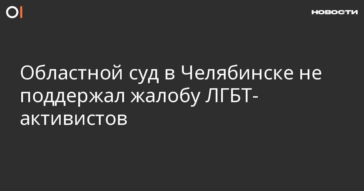 Челябинский областной суд отказался поддержать жалобу Николая Алексеева, Ярослава Евтушенко и Софьи Михайловой на решение Советского районного суда по жалобе на отказ администрации Челябинска согласовать проведение публичной акции в защиту прав ЛГБТ. Об этом сообщает Коммерсант со ссылкой на заявителей.