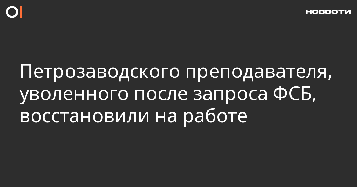 Городской суд Петрозаводска восстановил в должности преподавателя Петрозаводского университета Глеба Ярового, уволенного после поступившего в вуз запроса из ФСБ, пишет «7×7».