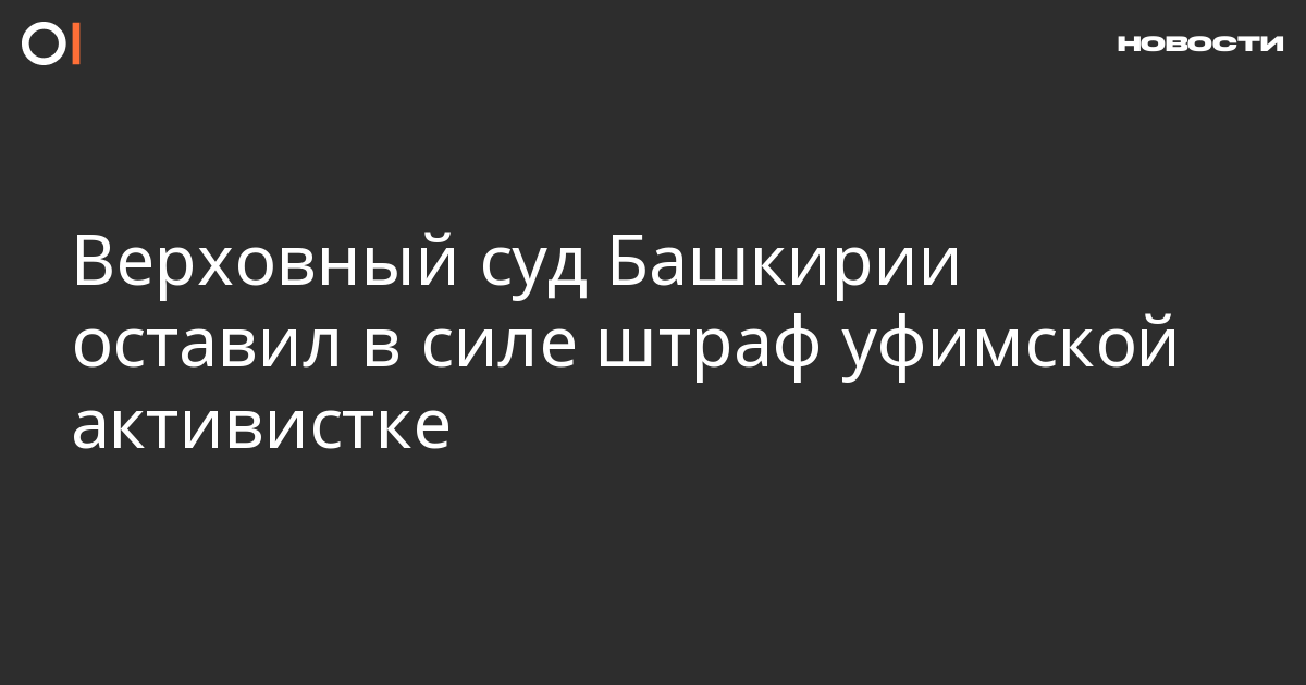 20 февраля Верховный суд Башкирии не удовлетворил апелляционную жалобу и тем самым оставил в силе решение суда о штрафе в размере 10 000 рублей активистке Елене Масайло. Об этом пишет «Коммерсант».