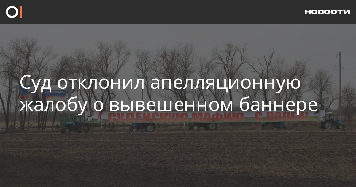 Краснодарский краевой суд оставил без изменений приговор Нине Поповой, осужденной за баннер «Судейскую мафию — с полей», вывешенный между тракторами в поле. Об этом сообщает «Российская газета». Ранее Кореновский районный суд осудил женщину по ч. 2 ст. 20.2 КоАП РФ (организация несогласованного мероприятия). Ей дали 45 часов обязательных работ (по другой информации 40 часов).