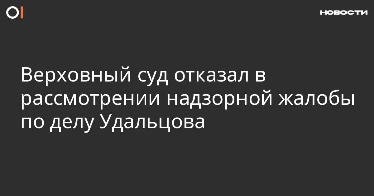 Верховный суд отказал в рассмотрении надзорной жалобы по делу Удальцова. Жалоба находилась в производстве Верховного суда 2,5 месяца. Об этом в Twitter пишет его жена Анастасия Удальцова.