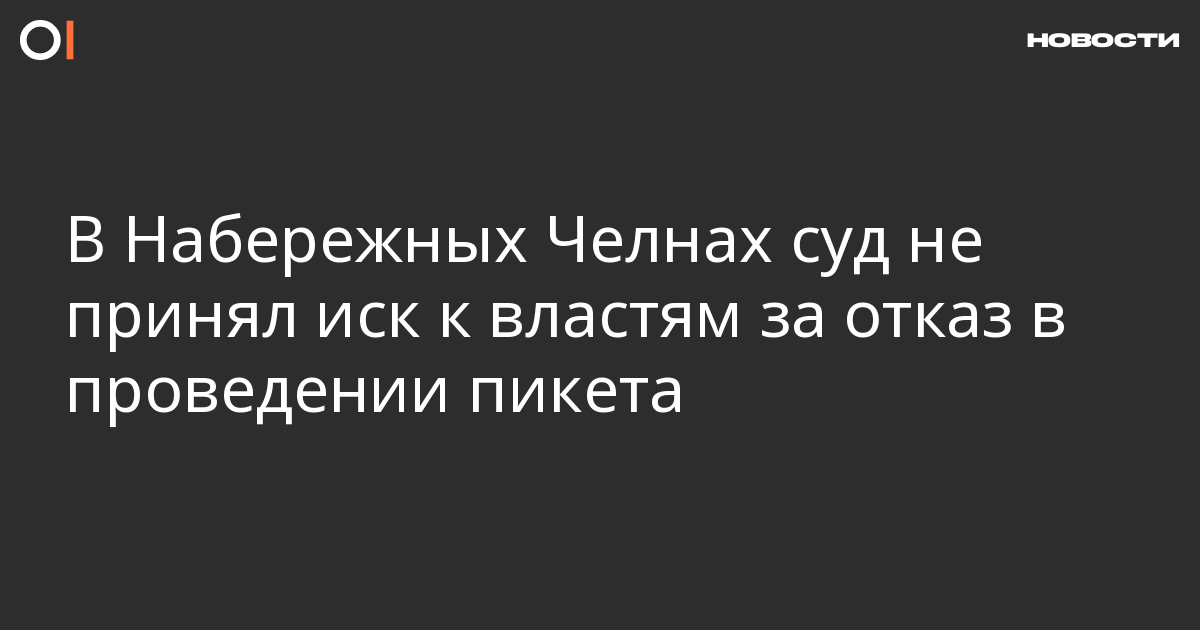 Городской суд Набережных Челнов отказался принимать иск к исполкому города за отказ в согласовании антикоррупционного пикета. Об этом сообщается на сайте Chelny-biz.ru со ссылкой на пресс-службу суда.