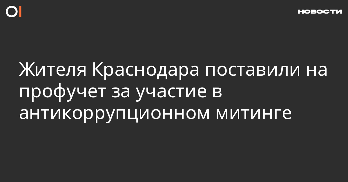 Жителя Краснодара, 25-летнего Андрея Чупышева, полиция поставила на профилактический учет за участие в антикоррупционной акции 26 марта. Об этом пишет «Медиазона».