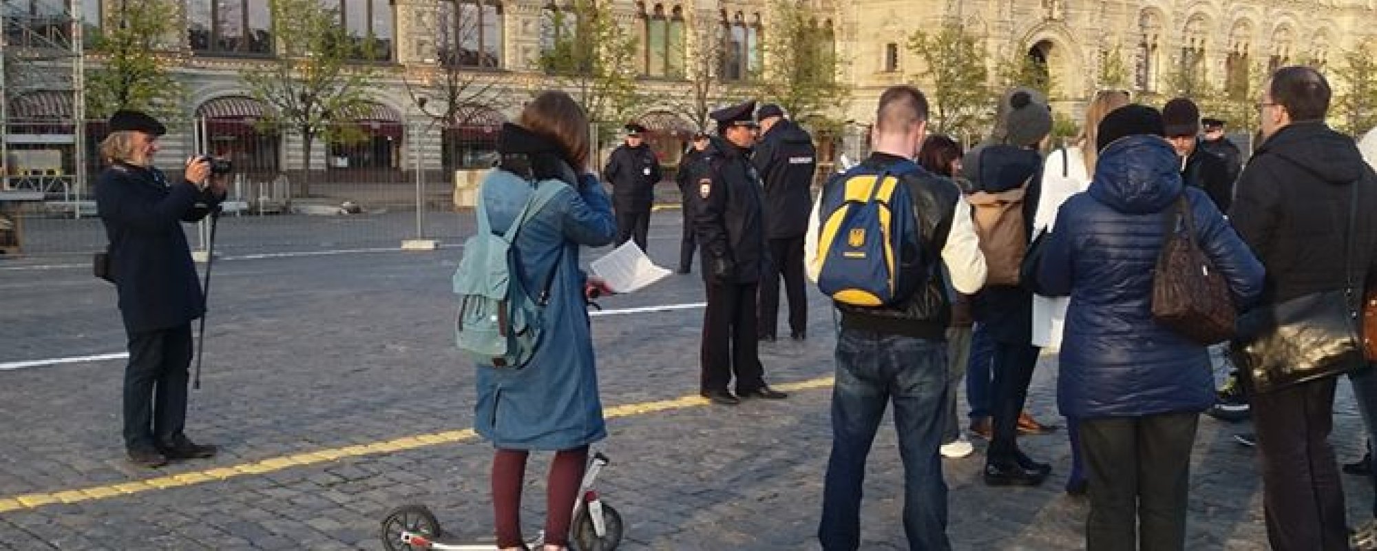 UPD: еще задержаны Елена Захарова, Саша Короткова, Людмила Румега, Юлия Успенская. Ильдара Дадина с Сергеем Ожичем довезли до ОВД «Китай-город» на автобусе, остальных активистов ведут пешком.