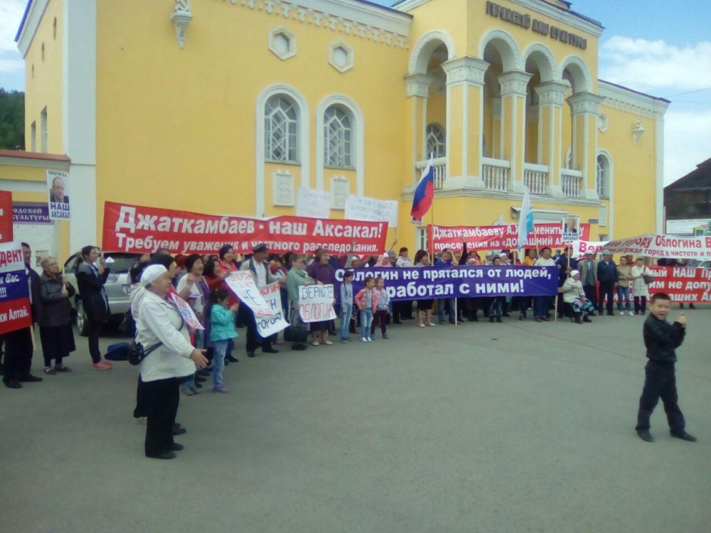 Сегодня в городском гайд-парке — площадке возле Городского Дома культуры, прошла акция в поддержку мэра Горно-Алтайска Виктора Облогина и главы Кош-Агачского района Республики Алтай Ауэльхана Джаткамбаева. Облогин находится под домашним арестом по обвинению в превышении должностных полномочий (ст. 286 УК) и мошенничестве (ст. 159 УК), Джаткамбаев помещен в СИЗО в связи с уголовным делом по ст. 290 УК (взятка). Собравшиеся на акцию протеста считают преследование чиновников необоснованным.