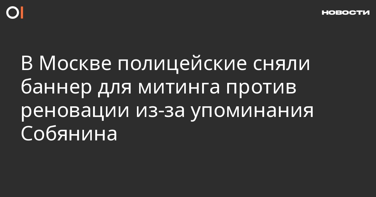 UPD: полиция изъяла почти все баннеры с упоминанием Сергея Собянина и Владимира Путина, написал в своем Twitter представитель Правозащитного центра «Мемориал», член движения «Солидарность» Сергей Давидис. По его словам, на баннере «Собянинскую реновацию — под снос» обрезали первое слово. При этом полицейские оставили баннер «Собянина в отставку». «Не смогли обосновать запрет на ясное выражение мнения граждан», — написал Давидис.