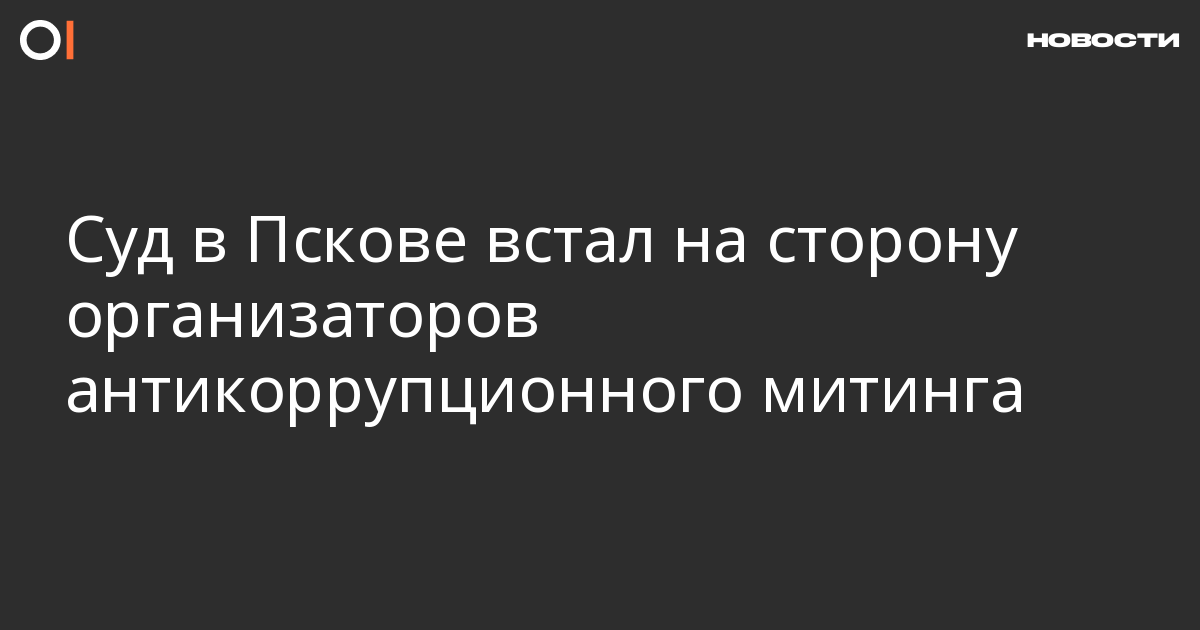 Псковский областной суд отменил решение Псковского городского суда по делу одного из организаторов митинга против коррупции 26 марта. Об этом 15 июня сообщило издание «Псковская губерния».