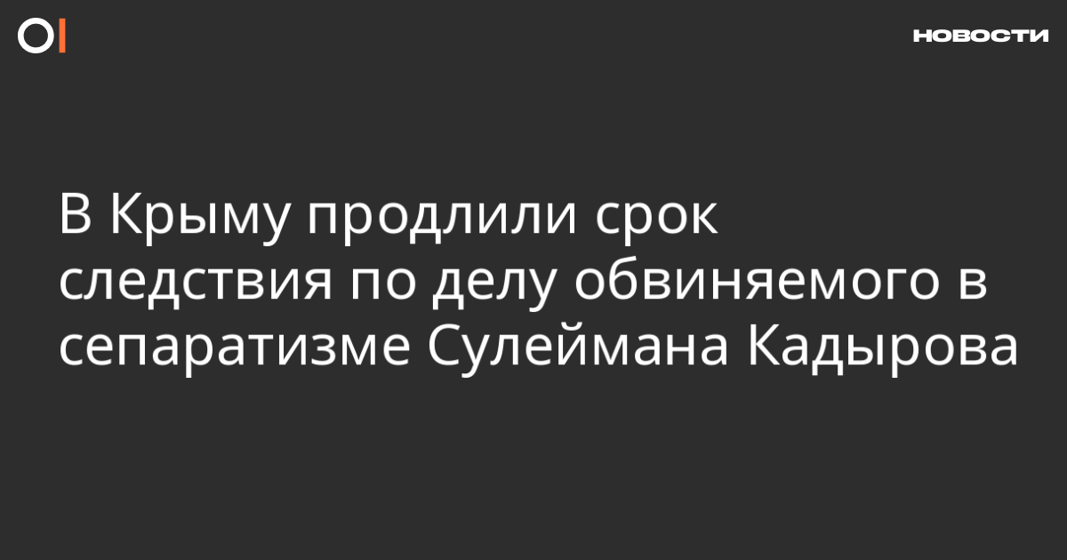 Управление ФСБ России по Крыму продлило срок следствия по делу члена Меджлиса крымскотатарского народа, активиста Сулеймана Кадырова до 7 августа. Об этом 22 июня сообщает издание «Крым. Реалии» со ссылкой на адвоката Кадырова Эмиля Курбединова.