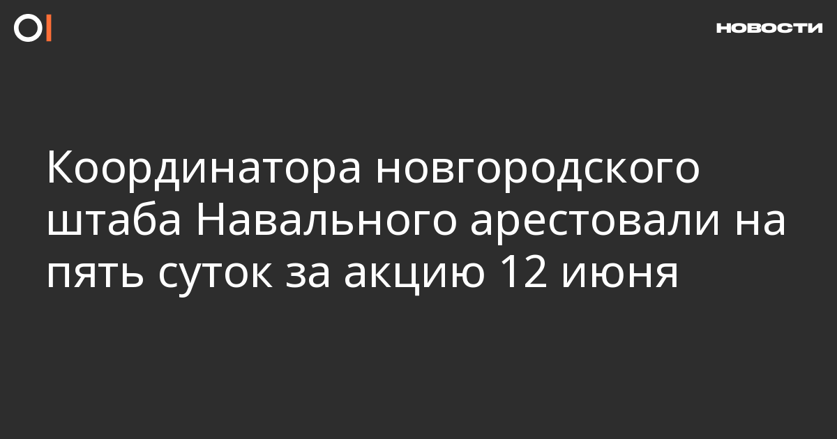 Новгородский районный суд арестовал на пять суток координатора избирательного штаба Алексея Навального в Великом Новгороде Григория Смирнова. Его признали виновным в неповиновении законному распоряжению сотрудника полиции (ч.1 ст.19.3 КоАП) на акции против коррупции 12 июня, передает «Новгород.ру».