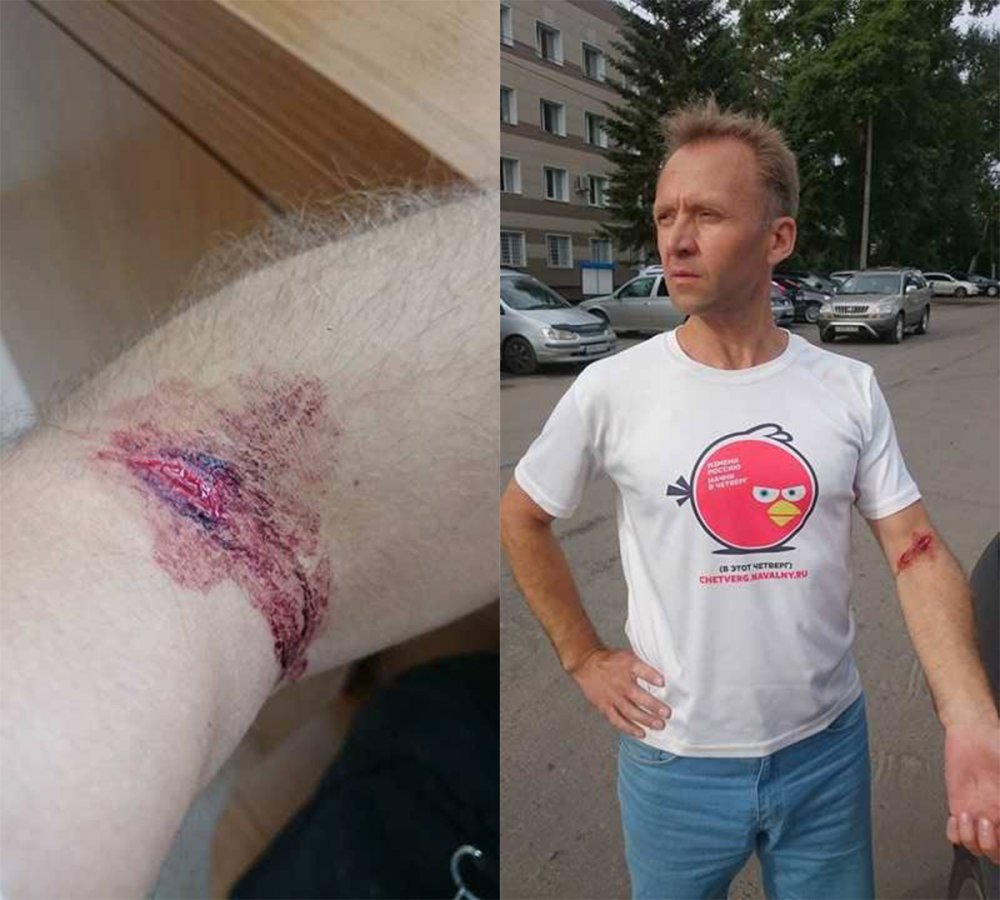 Фотиева рассказала изданию «Тайга.инфо», что на Косарецкого напали два человека. Активисты шли в администрацию подавать заявление о публичном информировании о кампании Алексея Навального.
