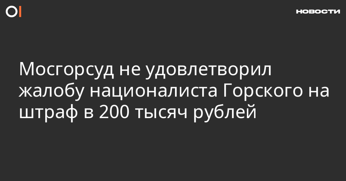 Мосгорсуд 12 июля отклонил апелляционную жалобу организатора «Русских маршей» Юрия Горского на решение Тверского суда, который оштрафовал активиста на 200 тысяч рублей. Об этом ОВД-Инфо сообщил сам Горский.