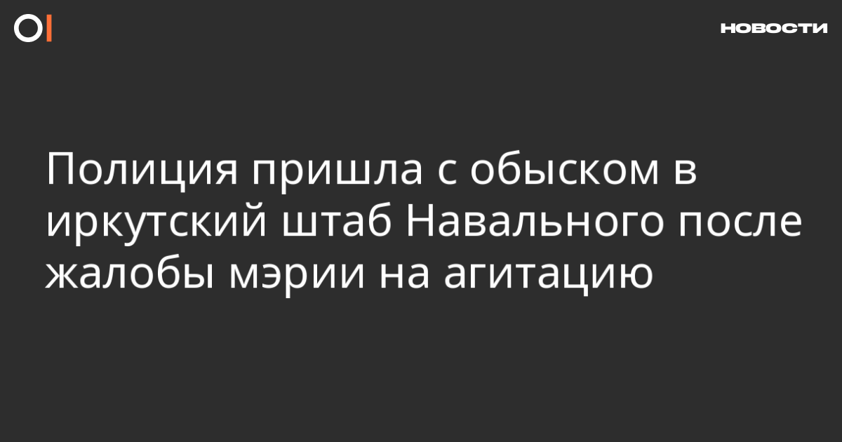 В иркутском предвыборном штабе политика Алексея Навального 21 июля полицейские проводят обыск. Об этом сообщает «Интерфакс» со ссылкой на координатора местного штаба Сергея Беспалова.
