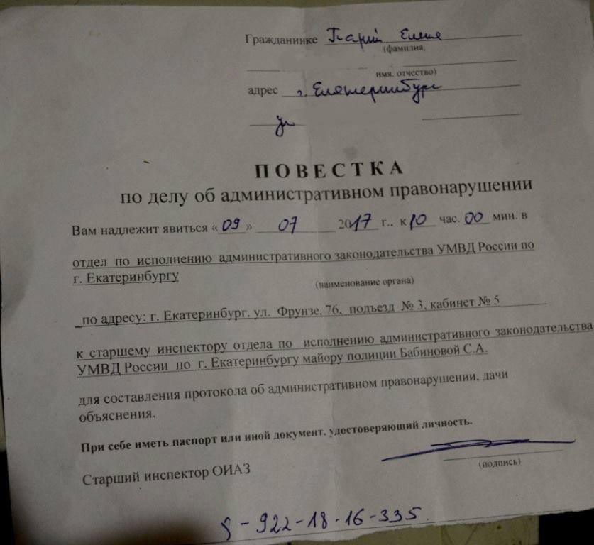 В итоге в полиции 9 июля на Парий составили два протокола, пишет Зыков. Один протокол — о нарушении при проведении согласованного мероприятия (якобы участники отклонились от указанного маршрута), второй — о проведении несогласованного мероприятия. Одно дело должно рассматриваться в Ленинском районном суде 31 июля, другое — в Верх-Исетском.