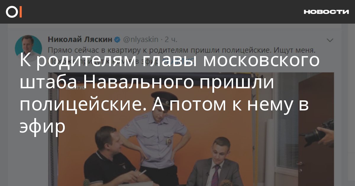 В квартиру родителей Николая Ляскина, главы предвыборного штаба политика Алексея Навального, 3 августа пришли сотрудники полиции. Об этом Ляскин написал в твиттере. По словам Ляскина, полицейские искали его.
