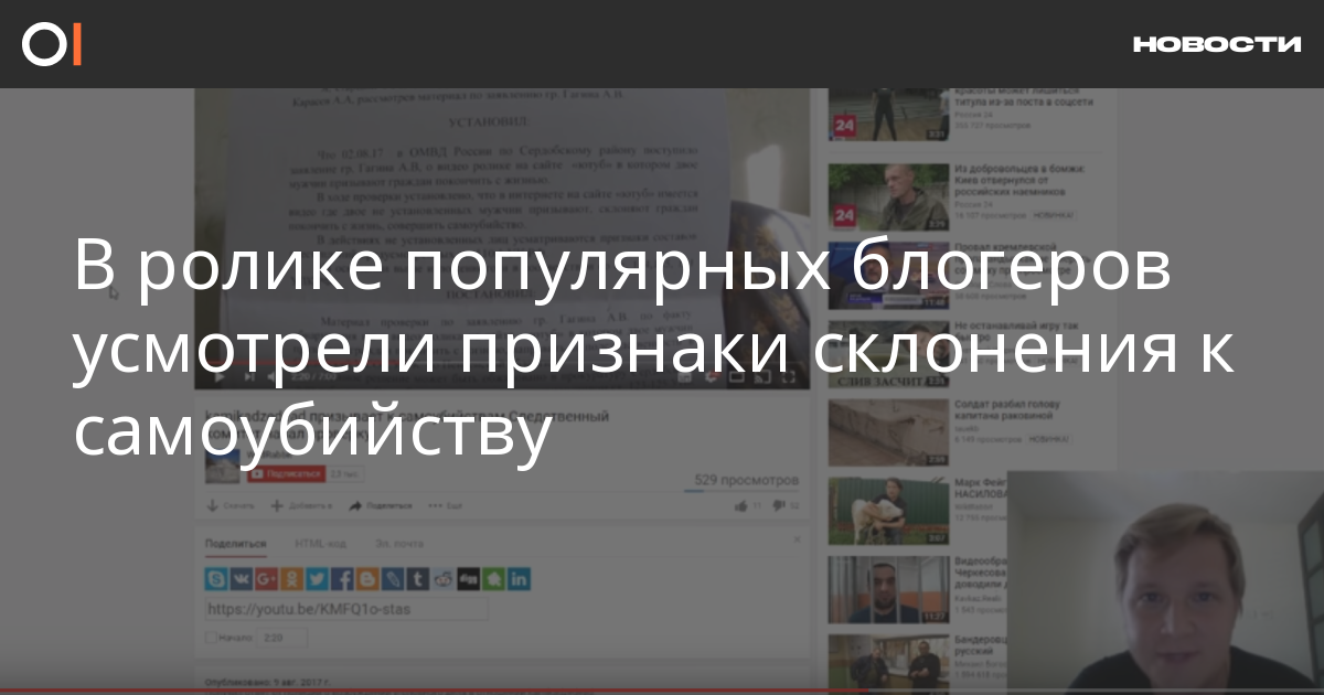 В ролике с участием популярных блогеров kamikadzedead (Дмитрия Иванова) и Ильи Мэддисона (Давыдова) усмотрели признаки склонения к самоубийству. Об этом сам kamikadzedead сообщил в своем «прощальном» ролике на YouTube от 10 августа. Блогер заявил, что, поскольку ему светит уголовное дело, он уходит из интернета на неопределенное время.