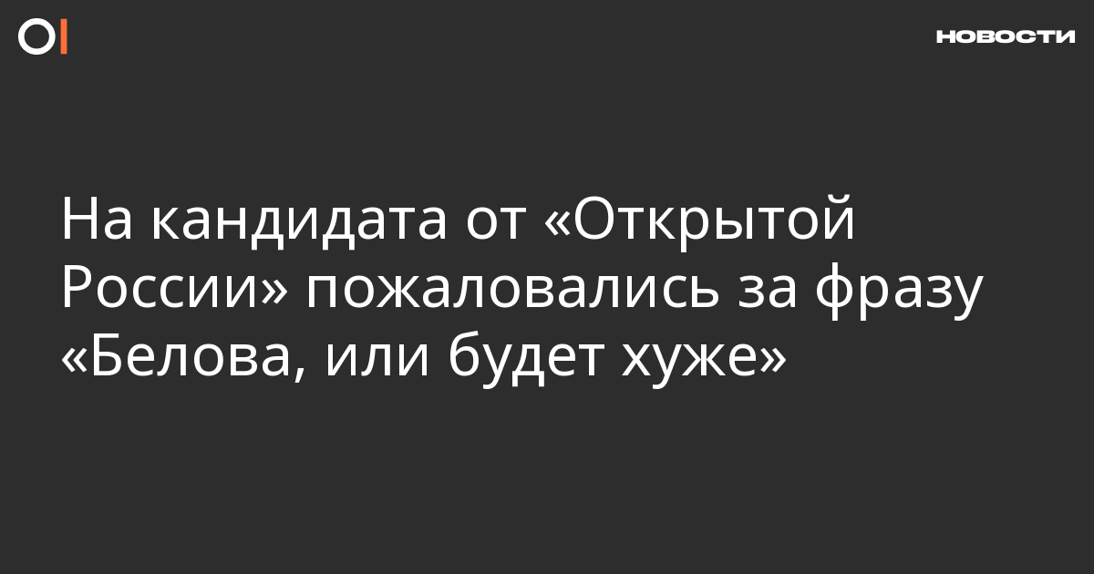 В Тверской области кандидата от «Открытой России» на выборах в Торжокскую городскую думу Марину Белову обвинили в «незаконной агитации» и «давлении» на избирателей. В агитационном ролике была использована фраза «Белова, или будет хуже». Об этом пишет «Открытая Россия».